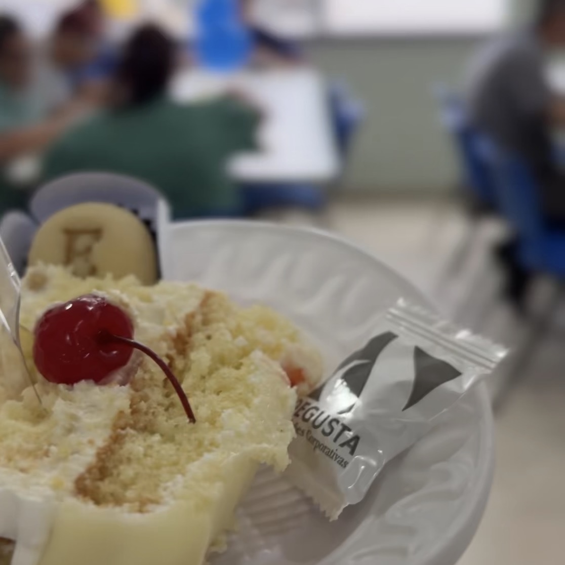 Durante o almoço de inauguração, a DEGUSTA preparou uma recepção especial: além de música ao vivo, foi servido bolo confeitado e refrigerante para celebrar as pessoas aniversariantes do mês de outubro na USITEC, uma forma de fortalecer vínculo e cultura interna. Em um momento solene, o Sr. Carlos Eduardo Silvestre, proprietário da metalúrgica, agradeceu publicamente a parceria, ressaltando o engajamento da DEGUSTA na implantação do restaurante corporativo com cozinha local.